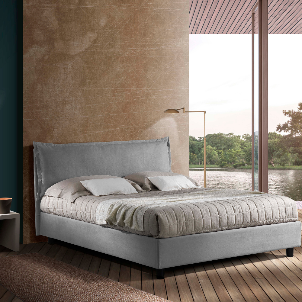 Grevy letto imbottito con contenitore piedini letto contenitore. Vendita online letti imbottiti in pelle o ecopelle, letti tessili in tessuti colorati a scelta, letti con contenitore.
